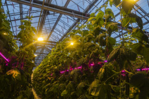 Belichtingsproef komkommerteelt onder LEDs in volle gang
