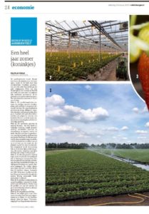 De aardbeienteler tovert. Draait met trucs de plantjes een rad voor ogen, opdat ze het hele jaar hun overheerlijke vruchtjes produceren. Zo ook teler Marcel Dings die met compagnon Peter van den Eertwegh in vier kassen in Belfeld en Venlo het jaar rond 2,5 miljoen kilo aardbeien produceert. In de piek met zo’n tweehonderd mensen. Nu zijn tientallen mensen in Venlo aan de slag.